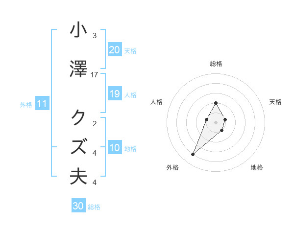 小澤 クズ夫さんを姓名の画数から五運を鑑定