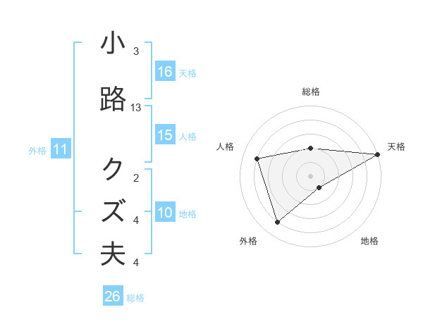 小路 クズ夫さんを姓名の画数から五運を鑑定