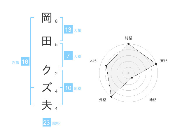 岡田 クズ夫さんを姓名の画数から五運を鑑定