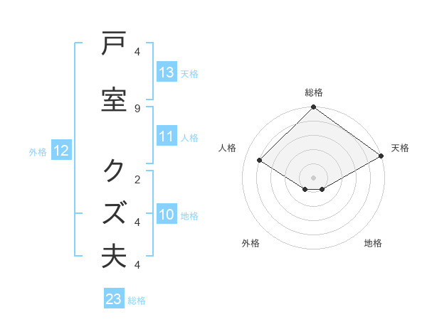 戸室 クズ夫さんの総格は23画の5点!