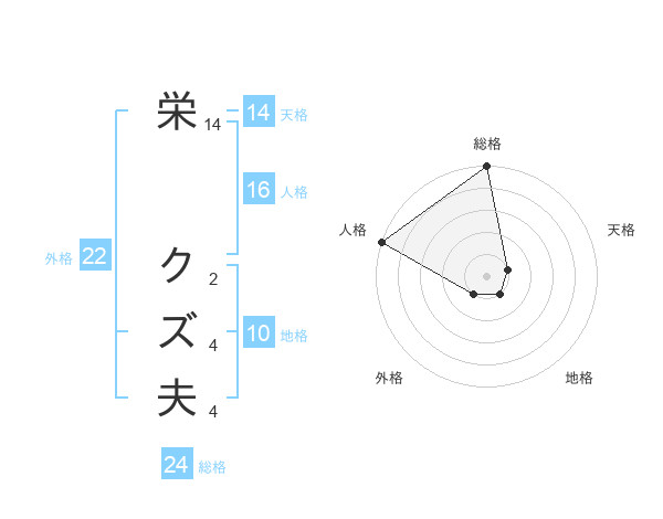 栄 クズ夫さんの総格は24画の5点!