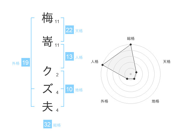 梅嵜 クズ夫さんの総格は32画の5点!