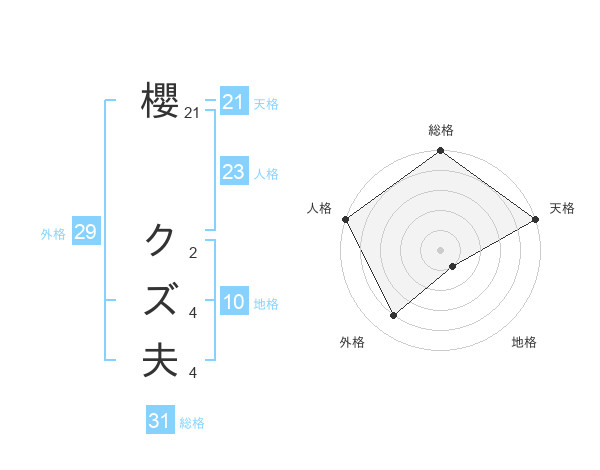 櫻 クズ夫さんを姓名の画数から五運を鑑定
