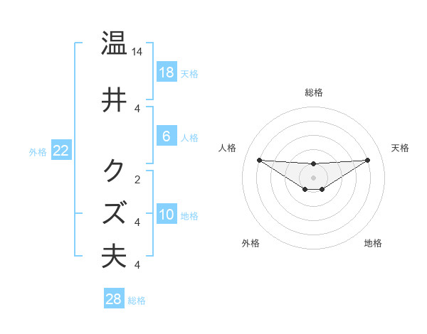 温井 クズ夫さんを姓名の画数から五運を鑑定