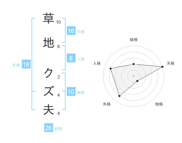 草地 クズ夫さんの地格は10画の1点!