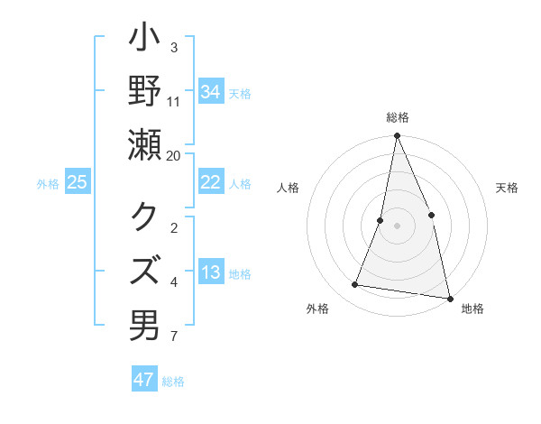小野瀬 クズ男さんを姓名の画数から五運を鑑定