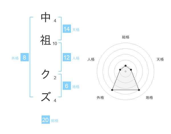 中祖 クズさんの総格は20画の1点!
