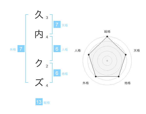 久内 クズさんの総格は13画の5点!