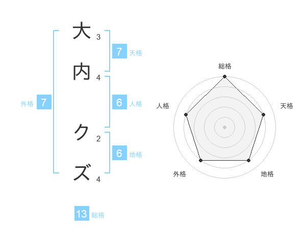 大内 クズさんの総格は13画の5点!