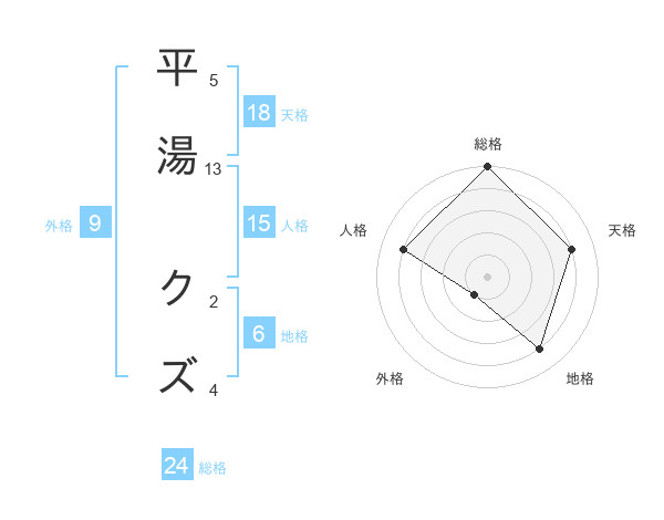 平湯 クズさんの総格は24画の5点!