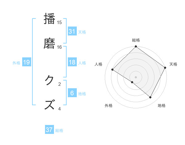 播磨 クズさんの総格は37画の5点!