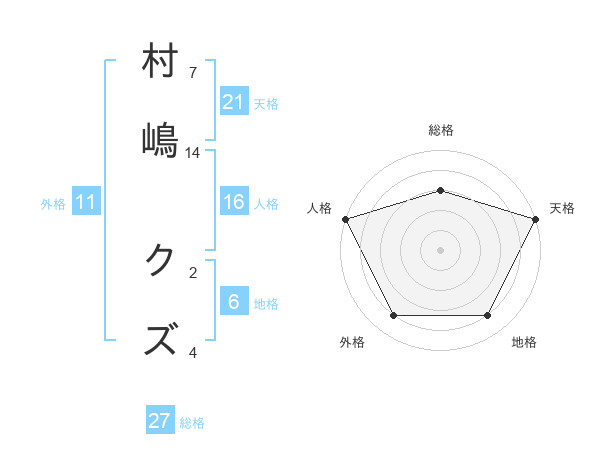 村嶋 クズさんを姓名の画数から五運を鑑定