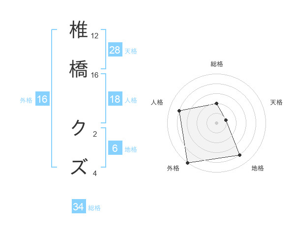 椎橋 クズさんの総格は34画の2点!