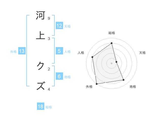 河上 クズさんの外格は13画の5点!