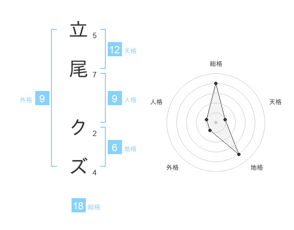 立尾 クズさんの天格は12画の1点!