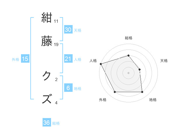紺藤 クズさんを姓名の画数から五運を鑑定