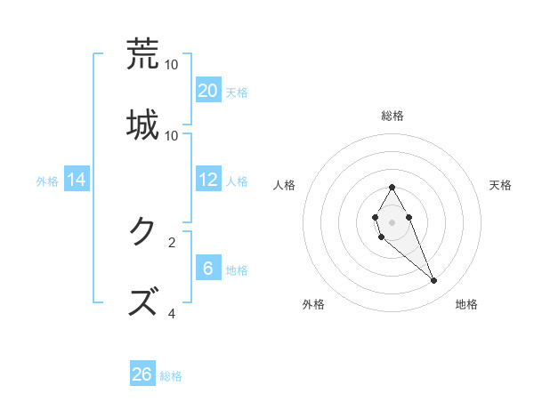 荒城 クズさんの地格は6画の4点!