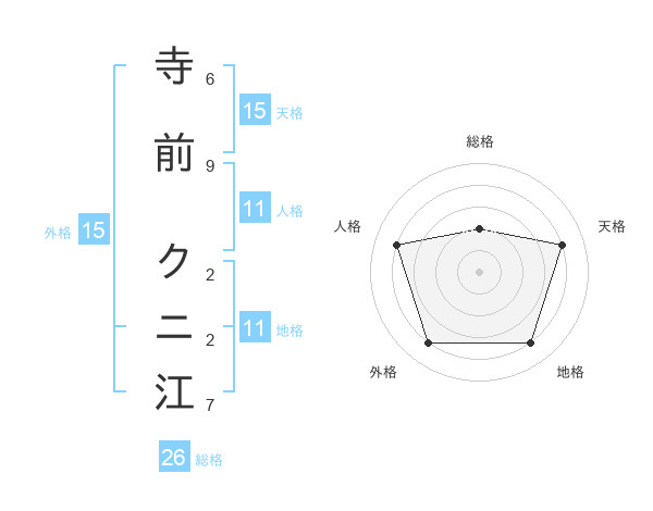 寺前 クニ江さんを姓名の画数から五運を鑑定