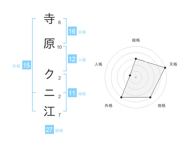 寺原 クニ江さんを姓名の画数から五運を鑑定