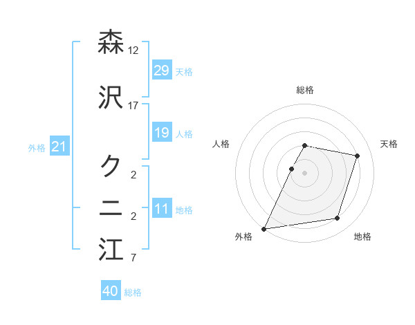 森沢 クニ江さんを姓名の画数から五運を鑑定