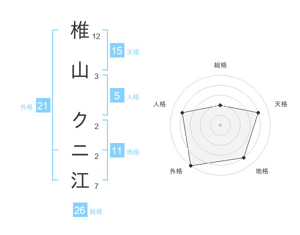 椎山 クニ江さんの総格は26画の2点!