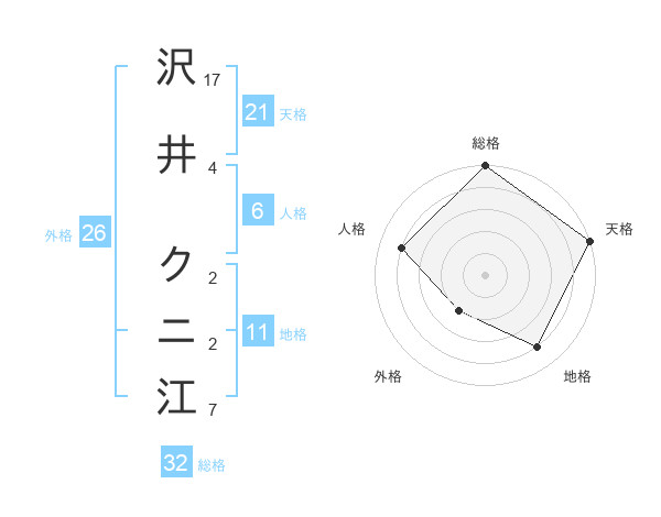 沢井 クニ江さんを姓名の画数から五運を鑑定