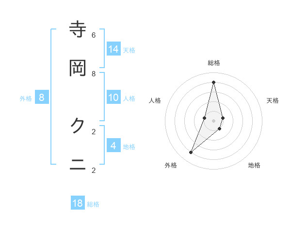 寺岡 クニさんの総格は18画の4点!