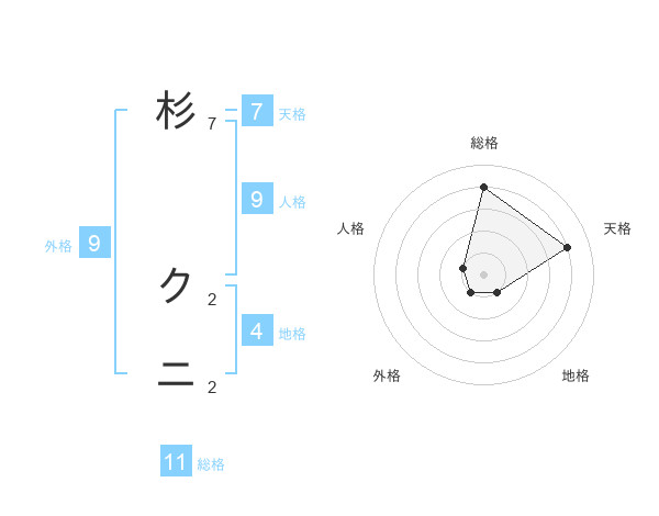 杉 クニさんの総格は11画の4点!