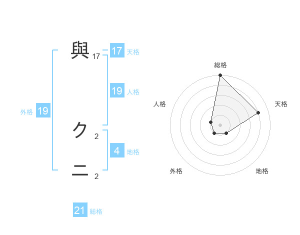 與 クニさんの総格は21画の5点!