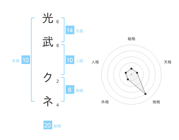 光武 クネさんの総格は20画の1点!