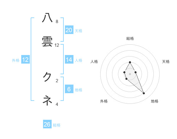 八雲 クネさんの天格は20画の1点!