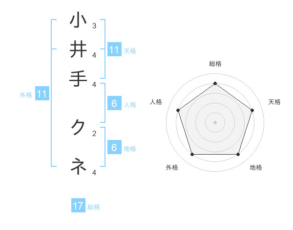 小井手 クネさんの天格は11画の4点!