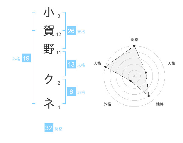 小賀野 クネさんを姓名の画数から五運を鑑定