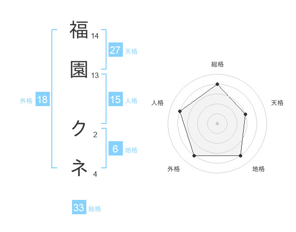 福園 クネさんの天格は27画の3点!