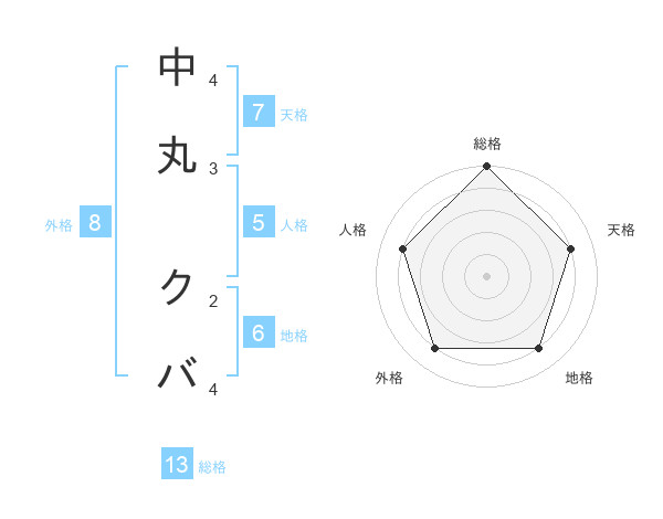 中丸 クバさんの総格は13画の5点!
