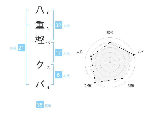 八重樫 クバさんを姓名の画数から五運を鑑定