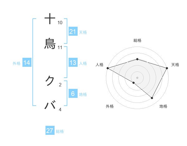 十鳥 クバさんの総格は27画の3点!