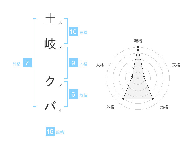 土岐 クバさんの総格は16画の5点!