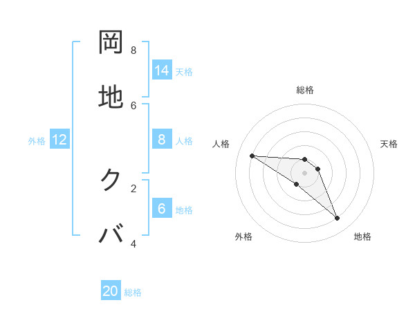 岡地 クバさんの総格は20画の1点!