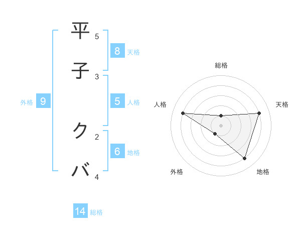 平子 クバさんの天格は8画の4点!