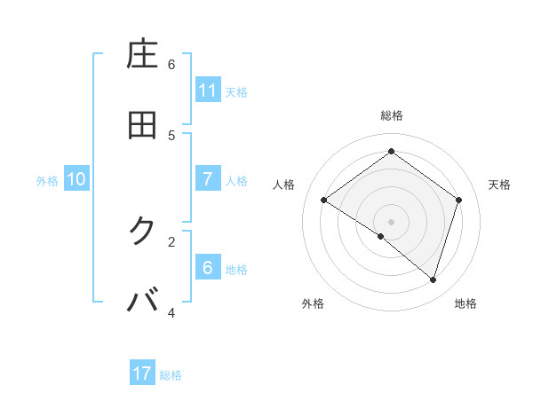 庄田 クバさんの総格は17画の4点!