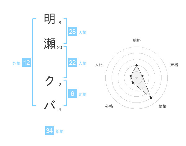 明瀬 クバさんの天格は28画の1点!