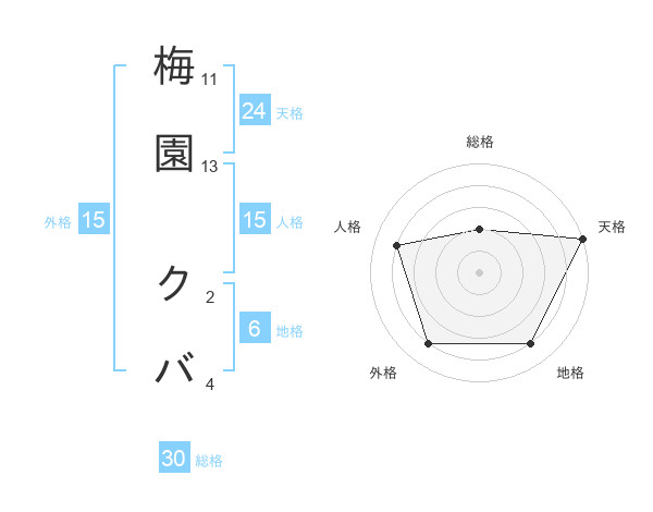 梅園 クバさんの天格は24画の5点!