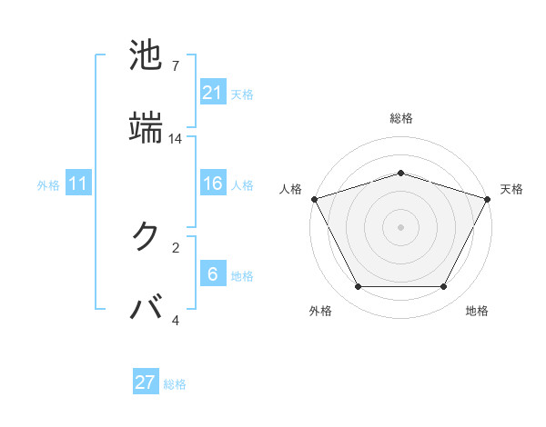 池端 クバさんの天格は21画の5点!