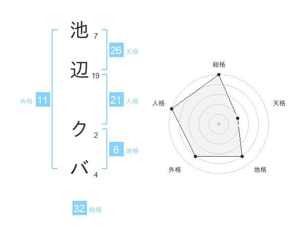 池辺 クバさんの総格は32画の5点!