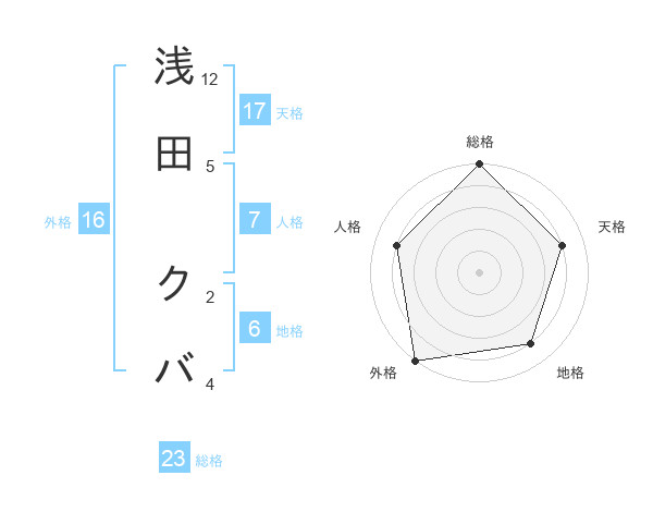 浅田 クバさんの総格は23画の5点!