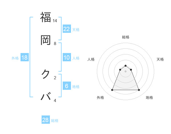 福岡 クバさんの総格は28画の1点!