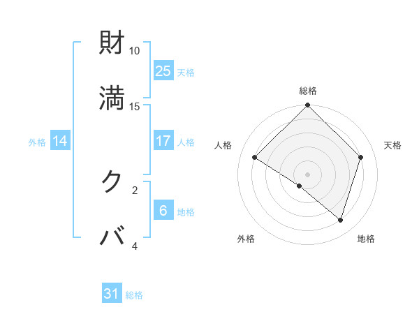 財満 クバさんの天格は25画の4点!