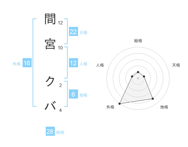 間宮 クバさんの総格は28画の1点!
