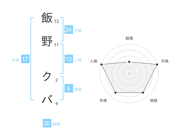 飯野 クバさんの外格は17画の4点!